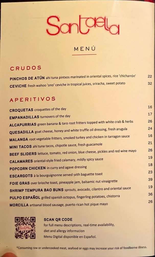 Santaella Menu